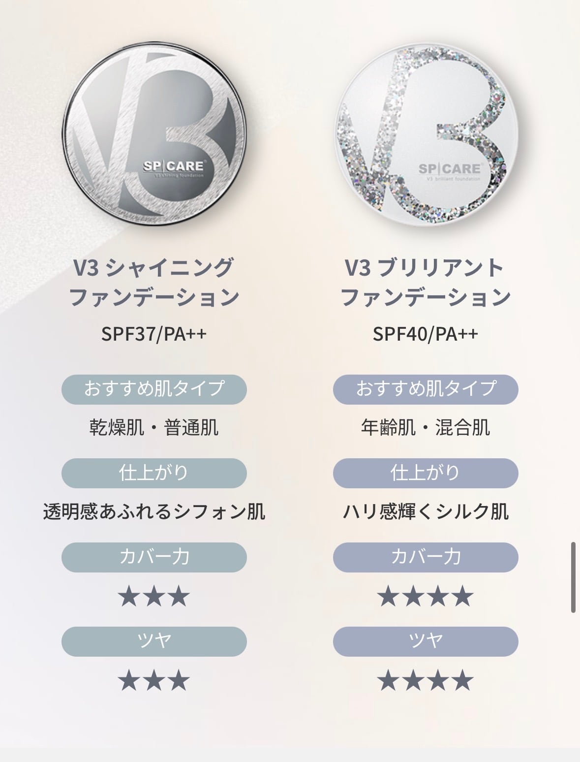 V3ブリリアントファンデーション&V3 VSPIC Cクリーム